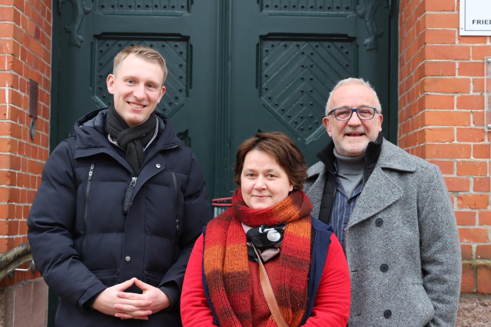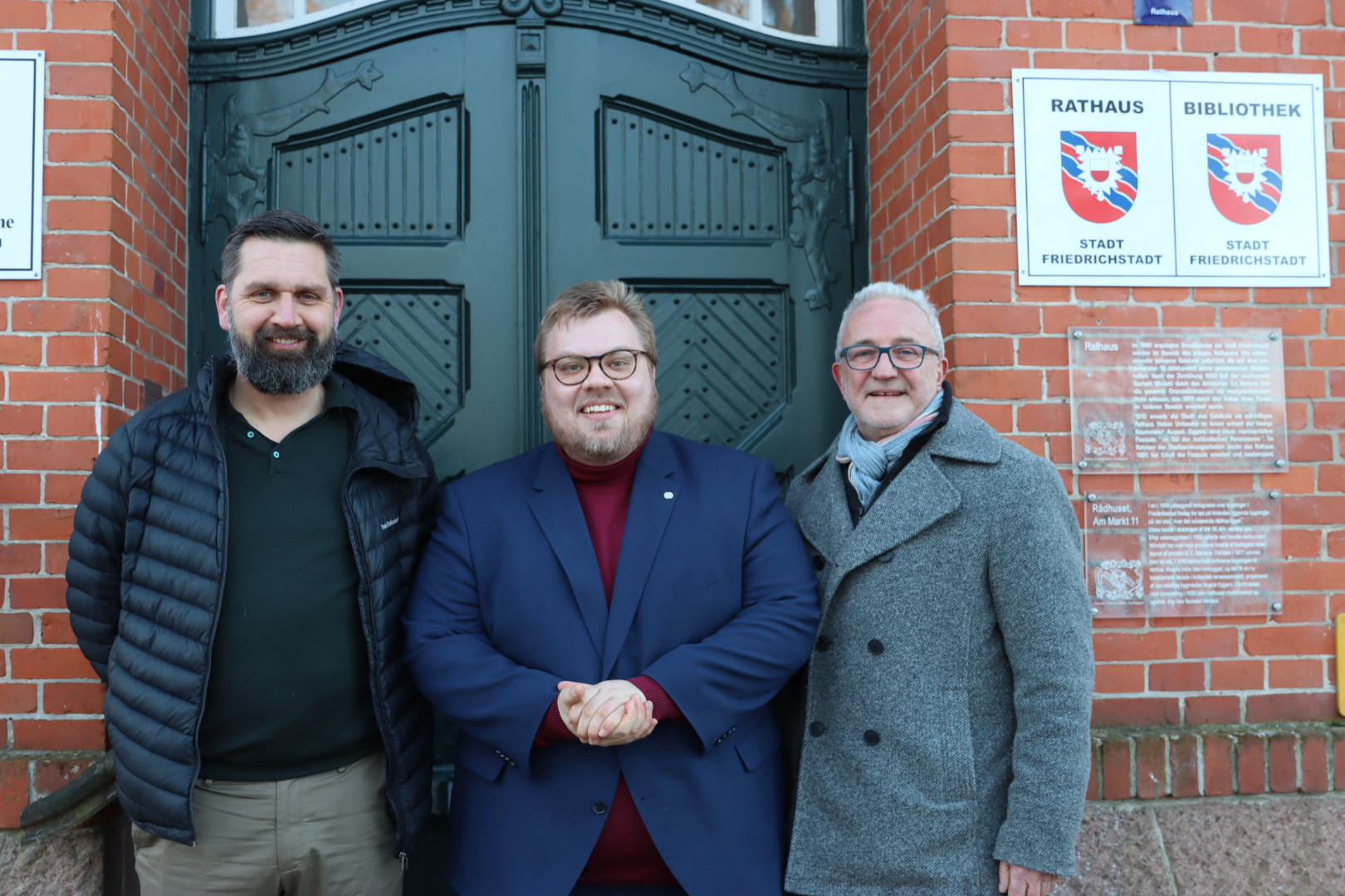Die Bundestagsabgeordneten Truels Reichardt (SPD) und Leif Bodin (CDU) haben im Rahmen ihres Antrittsbesuchs das Rathaus in Friedrichstadt besucht. Empfangen wurden sie vom stellvertretenden Bürgermeister Uwe Eisenmann sowie Vertreterinnen und Vertretern aus Verwaltung und Kommunalpolitik.