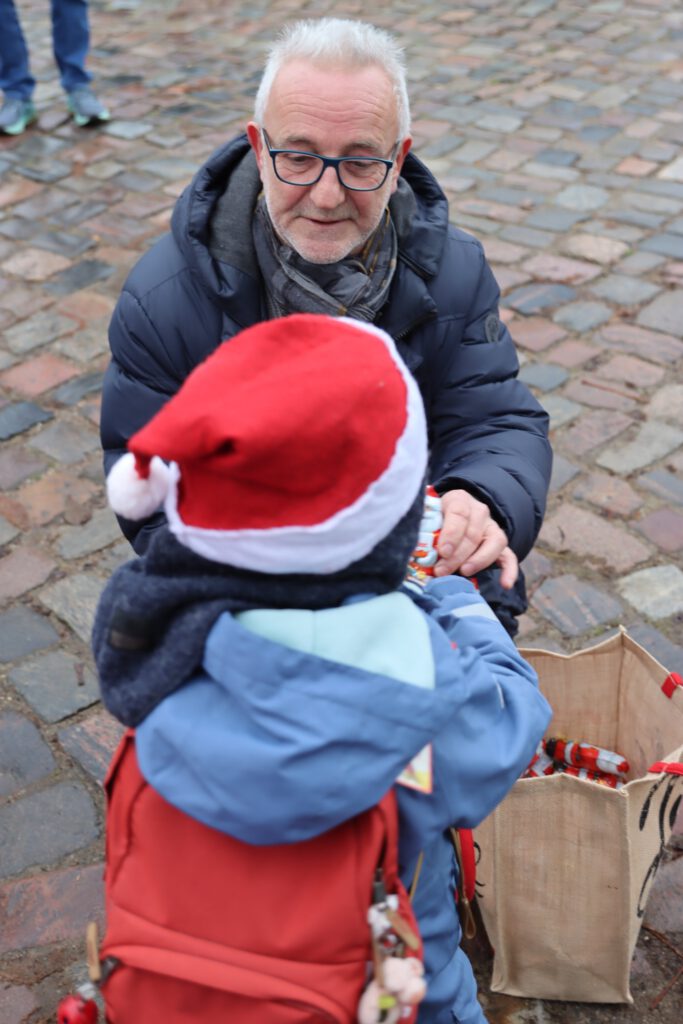Als kleine Anerkennung gab es für jedes Kind einen warmen Kakao und einen Schokoladen-Weihnachtsmann – eine süße Belohnung für ihren musikalischen Einsatz.