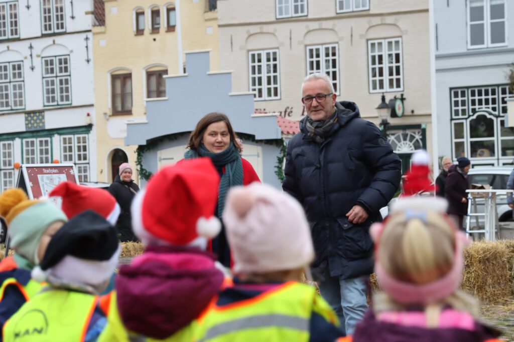 Begrüßt wurden die kleinen Sängerinnen und Sänger vom stellvertretenden Bürgermeister Uwe Eisenmann sowie von Doreen Stümpel, der Vorsitzenden des Ausschusses für Jugend, Kultur und Soziales. Beide dankten den Kindern und Erzieherinnen herzlich für ihren Beitrag zur vorweihnachtlichen Atmosphäre in der Stadt.