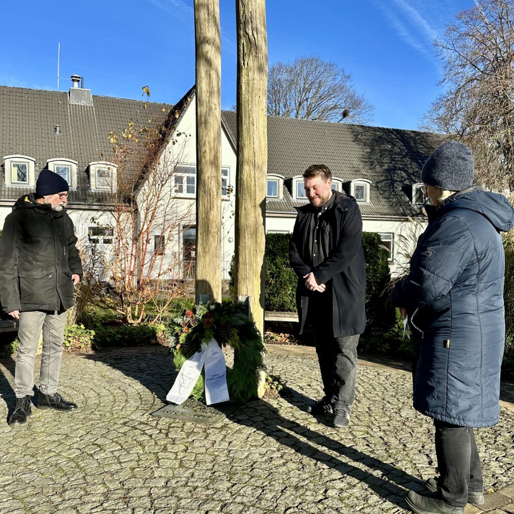 Im Anschluss legten Bernd-Roland Hündorf und Sebastian Kahlcke im Namen der Stadt Friedrichstadt feierlich die Kränze nieder – zunächst an der Bauernglocke, anschließend am Mahnmal auf dem Friedhof an der Schleswiger Straße. Die Anwesenden gedachten in Stille der Opfer und reflektierten die Verantwortung der heutigen Generationen für Frieden und Demokratie.